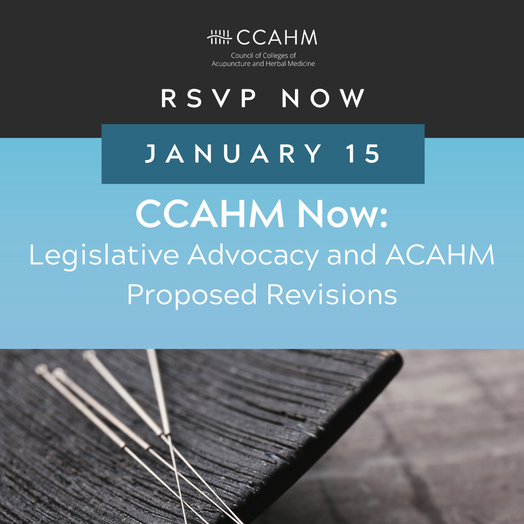 CCAHM invites all individuals from member schools to participate in the next CCAHM Now member-only virtual meeting on Thursday, January 15, 2026. This session will focus on timely and pressing issues affecting Acupuncture and Herbal Medicine education, including...